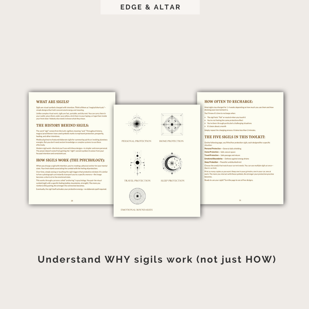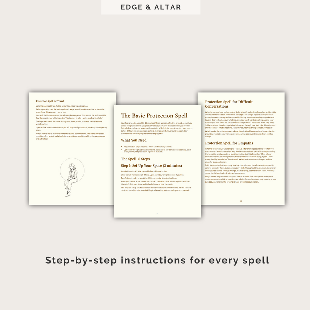 This toolkit gives you everything you need to practice effective protection magic—whether you're dealing with draining coworkers, overwhelming family dynamics, empathic overwhelm, or just need to feel safer in your space.